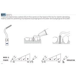 GD21. La tête de la pointe est recouverte de diamants sable fin 50um pour l'abrasion de la dentine principalement utilisé pour le polissage de l'épaulement supragingival de l'épaulement subgingival préparés.