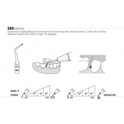 SBR (SBDR). Instrument diamanté (85µm) pour l'élimination des caries dentaires. Il n'endommage pas les dents adjacentes de gauche à droite à 45 degrés.