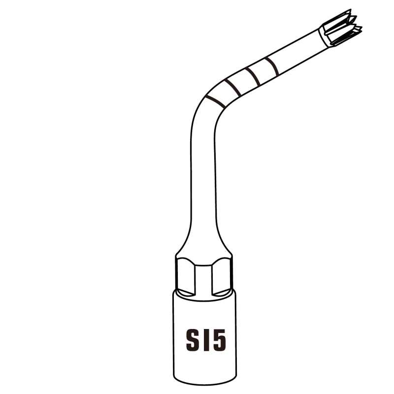 Insert SI5. Embout de préparation des implants de 2 mm de diamètre utilisé dans les régions postérieures, avec une extrémité pointue et de l'eau sortant du centre.
