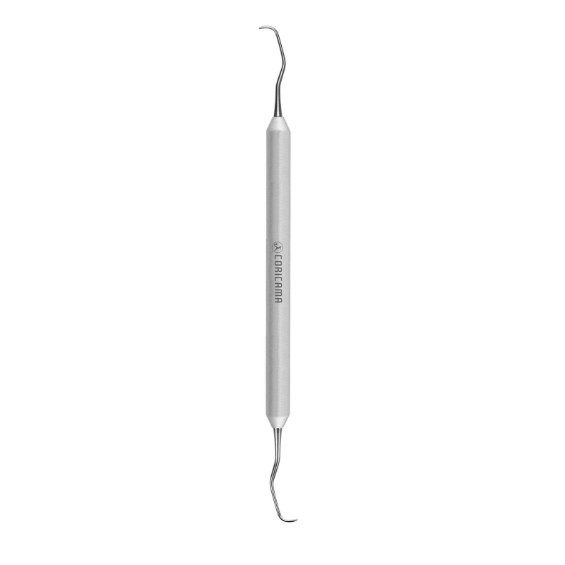 Pour l'élimination du tartre sous-gingival et le nettoyage des racines. Les curettes Gracey sont les plus populaires et les plus appréciées car elles sont moins traumatisantes que les curettes universelles. Les curettes Gracey sont divisées par type de traitement : chaque curette est conçue pour éliminer le tartre sur une zone spécifique. La lame est orientée et décalée selon le dessin et est affûtée d'un seul côté.