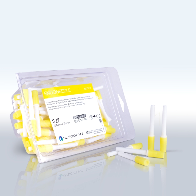 A la différence d’une canule d’irrigation à ouverture apicale, l’utilisation d’une canule à ouverture latérale évitera l’apparition d’une desmodontite aigue très douloureuse si le liquide de rinçage sous pression pénètre dans le desmodonte (effet de « canon à eau »).
