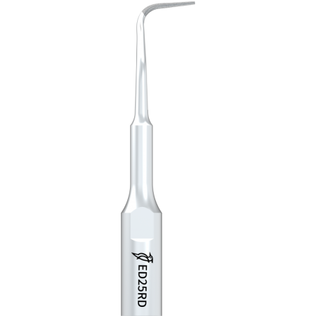 ED25RD. Courbé à droite pour la partie postérieur, revêtu de diamant 30 um, 5mm. Utilisé pour une coupe efficace de l'apex pendant le traitement de rétrogression du canal radiculaire.